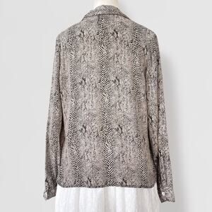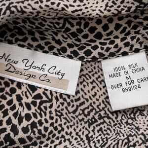 Vintage 100% Silk Snakeskin Button Down Shirt Sz M Animal Print Beige Black
