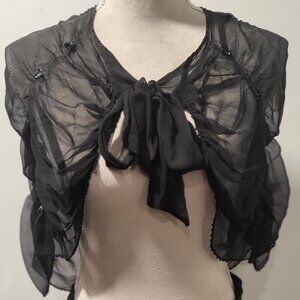 Vintage 100% Silk Victorian Morning Shawl (Goth) OS