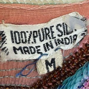 Vintage 100% Silk Y2K Babydoll Top Size XL Beaded Sequin Boho Fairy Festival