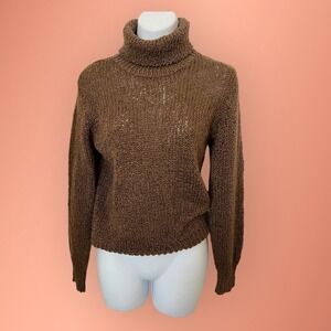 Vintage 100% Virgin Acrylic Fabre Handmade Turtleneck Brown Sweater 4