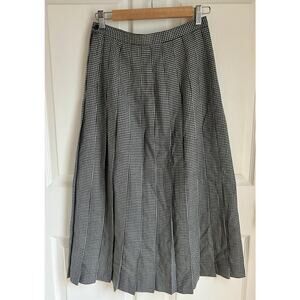 Vintage 100% Wool Black and White Houndstooth Pleated Skirt Size Medium