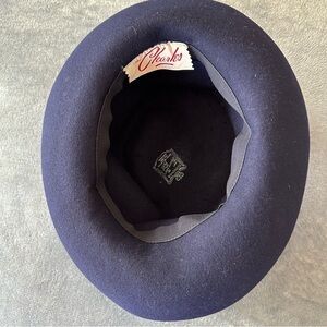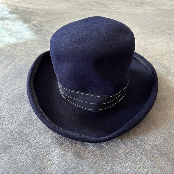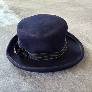 Vintage 100% Wool Clarks Navy Blue with Trim Bow Hat