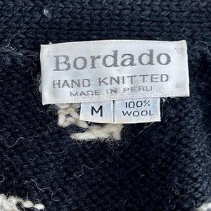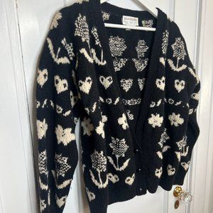 Vintage 100% Wool Hand Knit Cardigan Hearts/Flowers Bordado - L