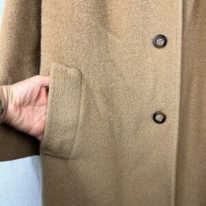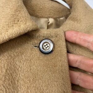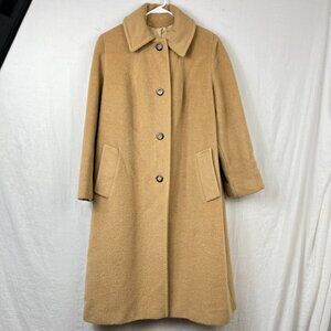 Vintage 100% Wool Mohair Long Trench Coat Sz Medium Camel Tan Overcoat Single