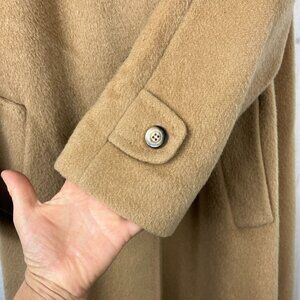 Vintage Apagora wool mohair blend long trench coat in classic camel tan