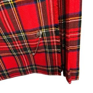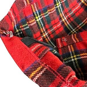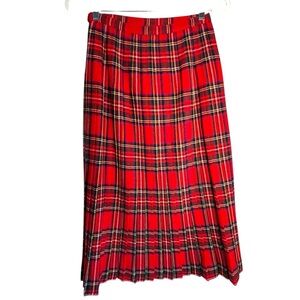Vintage high quality wool, pleated with leather straps that buckle, interior hook and eye. Kilt pin included. Fabric pattern Stuart Plaid