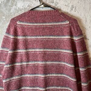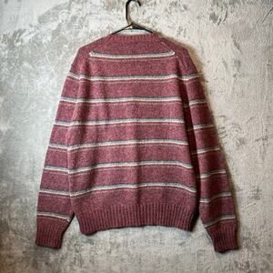 Vintage 100% Wool Striped Crewneck Sweater Red Gray Cozy Knit Chunky Grandpa XL