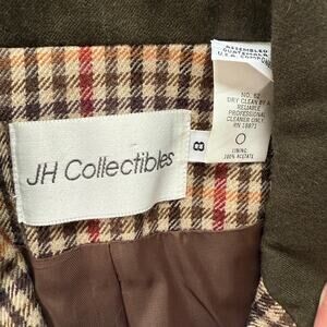 JH Collectibles Vintage 100% Wool Tweed Fitted Blazer Jacket in Brown Tan Houndstooth Plaid, Size 8