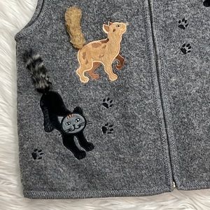 Vintage 100% Wool Zip Vest 3D Cat/ Paw Print 90s Vintage Cat Lover Granny Core M