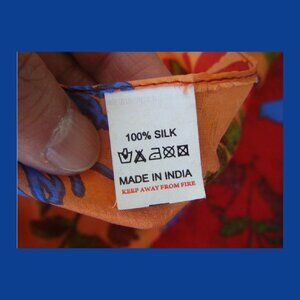 Vintage 100% silk caftan cover up. Unlined and sheer. Boat neck, slips on. One size: Approx. 41" across and 36" long. Good vintage condition, I didn't find any holes, didn't see any snags but may have some. Has birds, butterflies and plants pattern.