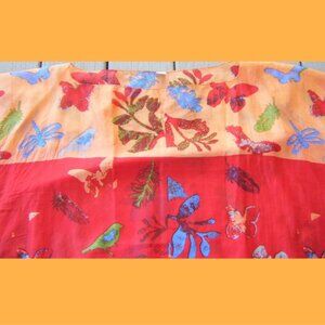 Vintage 100% silk caftan cover upbirds butterflies sheer