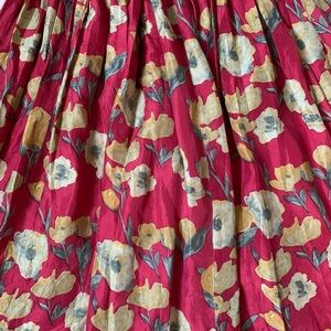 Vintage 100% silk red and yellow floral flowy maxi skirt