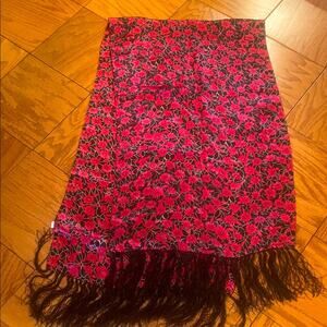 Vintage 100% silk woman's Floral Red and Black Scarf