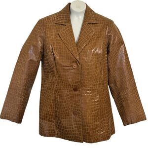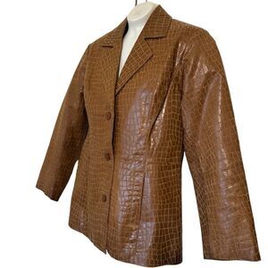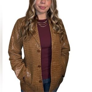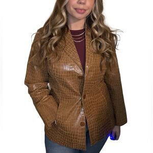 Vintage 100% Embossed Croc Leather 3 Button Front Jacket