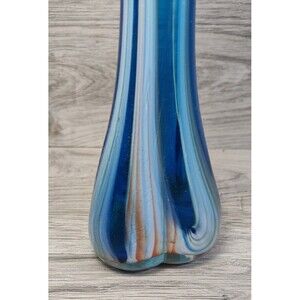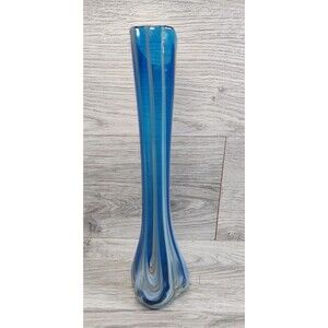 Vintage 10.5 Hand Made & Blown Blue Swirl Swung Stretch Glass Bud Vase Japan