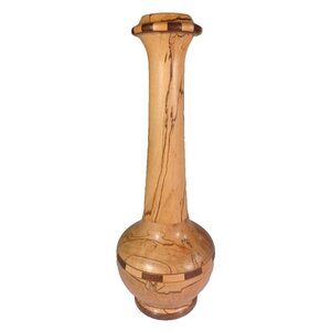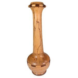 Vintage 10.5" Turned Spalted Beech & Segmented Maple Marquetry Bud Vase By George Sommer