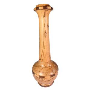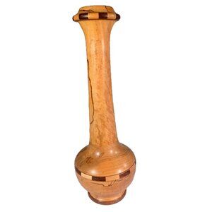 Vintage 10.5" Turned Spalted Beech & Segmented Maple Marquetry Bud Vase Signed
