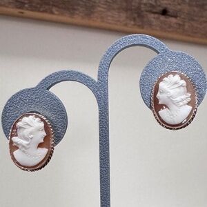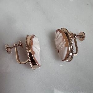 cameo earrings with screw back closures. Each earring measures 17L x 13W mm. The whole earrings weight 4.24 grams. 10K is marked on both screw backs (see photo #9). Measurement & weight are approximate. A complimentary of a jewelry box is includes.