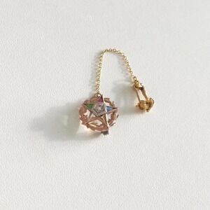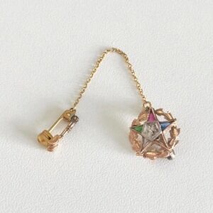 Vintage 10K Yellow Gold Eastern Star Masonic Diamond Multi-Gemstone Pin