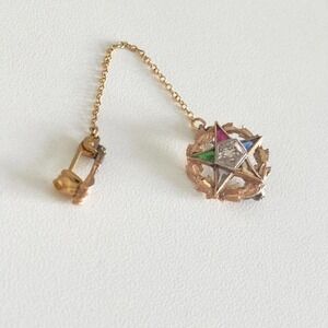 Lovely Vintage 10K Yellow Gold Eastern Star Masonic Diamond Multi-Gemstone Pin