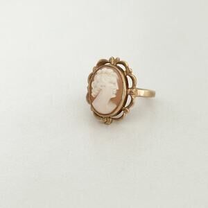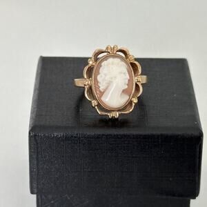 Vintage 10K Yellow Gold Genuine Cameo Shell Hand Carved Ladies Band Ring Size 5