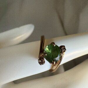 Vintage 10K yellow Gold Ring With Emerald Stone & Diamond Stones Size 5.75/6 3Gr