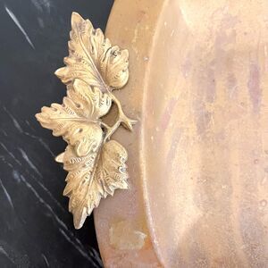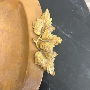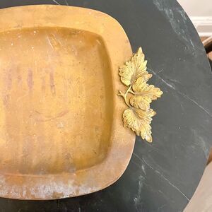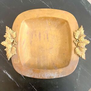 Vintage 10in Square Brass Tray Trinket Dish Ivy Leaf Handles Gold