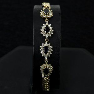 Vintage 10k Gold Pear Sapphire & Diamond Cuban Link Anniversary Bracelet