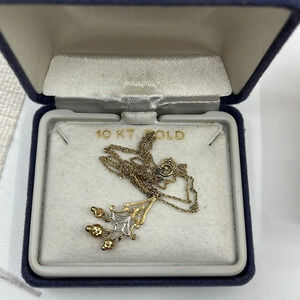This vintage 10k Italy gold chain and pendant combine the beauty of white and yellow gold in a timeless design. The chain measures approximately 16 inches in length and weighs 1.3 grams, making it a delicate and elegant accessory perfect for everyday wear or special occasions.