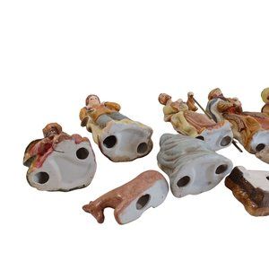 Vintage 11 Piece Ceramic Nativity Figure Set 2" to 8" Hand Painted Christmas