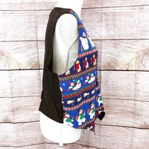Vintage 111 Main Blue and Black Festive Snowman and Penguin Vest Size L
