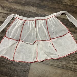 Vintage 1/2 Apron holiday Christmas Pockets Ricrac Handmade semi-sheer