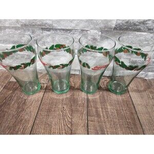 This vintage set of 7 Coca-Cola glasses features a classic 12" green tint design, perfect for collectors of soda advertising memorabilia. Made in the United States, these original drinking glasses showcase the iconic Coca-Cola brand and theme, making them a unique and nostalgic addition to any collection. The colorful multi-color scheme adds a festive touch, especially during the holiday season, making these glasses a must-have for fans of vintage Coca-Cola merchandise.