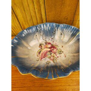 Vintage 12 Inch Porcelain Hand-Painted Fruit Bowl With Blue & Gold Detailing