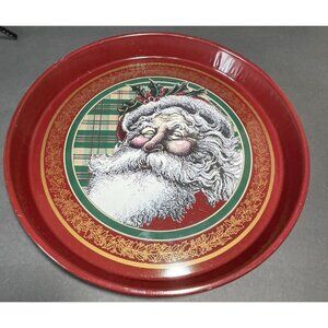 Vintage 12" Nobel Hall Santa Claus Tin Tray Christmas Holiday Old World Design
