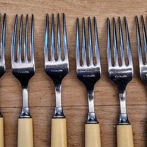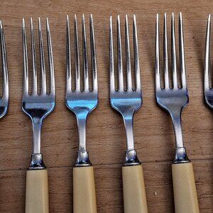 Vintage 12 Piece Universal Stainless Cutlery Set w/ Ivory Bakelite Handles