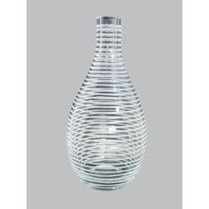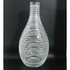 12" Polish Made Hand Blown Glass Bottle Vase with Etched Circles. Beautifully Etched Circles from top to bottom. This is a thick-walled heavy vase.