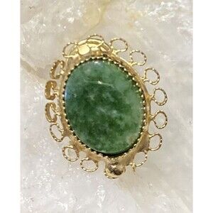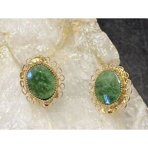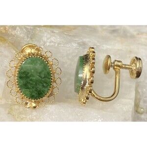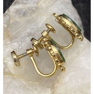 Vintage 1/20 12K GF Gold Filled Green Nephrite Ornate Screw Back Earrings Dainty