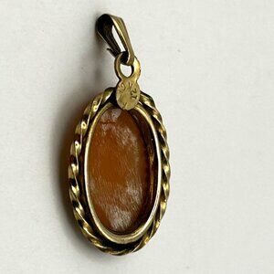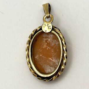 Vintage 1/20 12K GF Left Facing Cameo Pendant Oval Shell Gold Filled Rope Frame