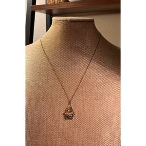Vintage 1/20 12K GF Necklace Floral Rhinestone Pendant Gold Filled Chain
