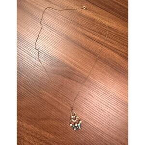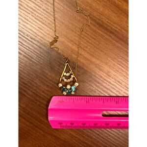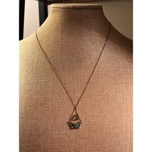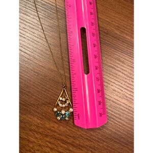 Beautiful vintage 1/20 12K gold-filled necklace featuring a delicate floral pendant with clear and aqua rhinestones. Mid-century design with classic charm. Perfect for collectors or retro jewelry lovers. Clasp is stamped. Gently pre-owned and in lovely condition. Please review all photos before purchasing.