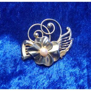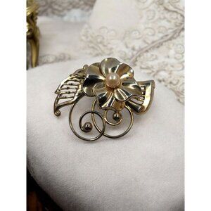 Vintage 1/20 12K Gold filled Faux Pearl Floral Scroll Brooch / Pin / Pendant