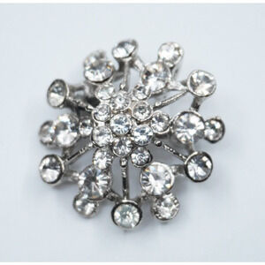Vintage 1.25” Star Burst Small Brooch with Layered Rhinestone Silver-tone Pin