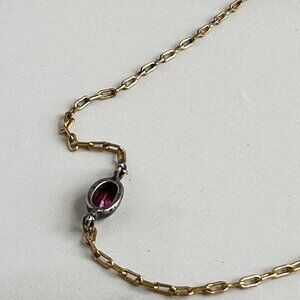 This necklace features a delicate 12K gold-filled chain adorned with simulated gemstones set in sterling silver. Its 18-inch length offers versatile wear.