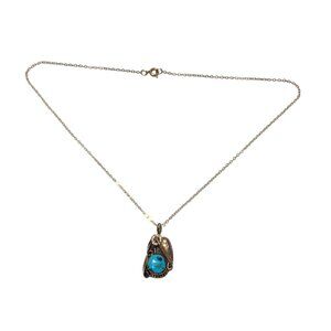 Vintage 12K Gold Filled Pendant Necklace Blue Turquoise Floral by Beverly Lucero