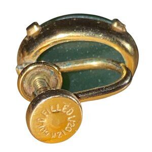 Vintage 12K Gold Filled Screw Back Jade Earrings Oval Cabochon Green Gemstone Cl