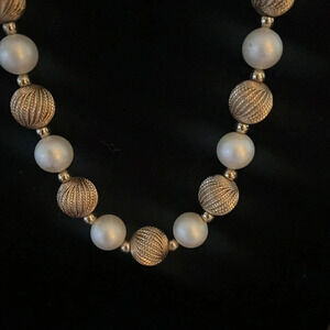 Vintage 13” Gold Tone And Pearl Beaded Necklace With 2.5” Extender