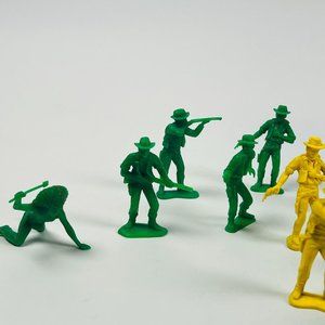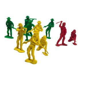 Vintage 13 Toys Plastic Cowboys & Indians 2.5"-3" Figures Red, Green & Yellow