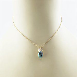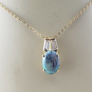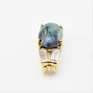 Vintage 14 Karat Black Opal and Diamond Pendant #8455