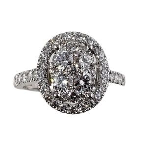Vintage 14 Karat White Gold Diamond Cluster Ring Size 7-7.25
